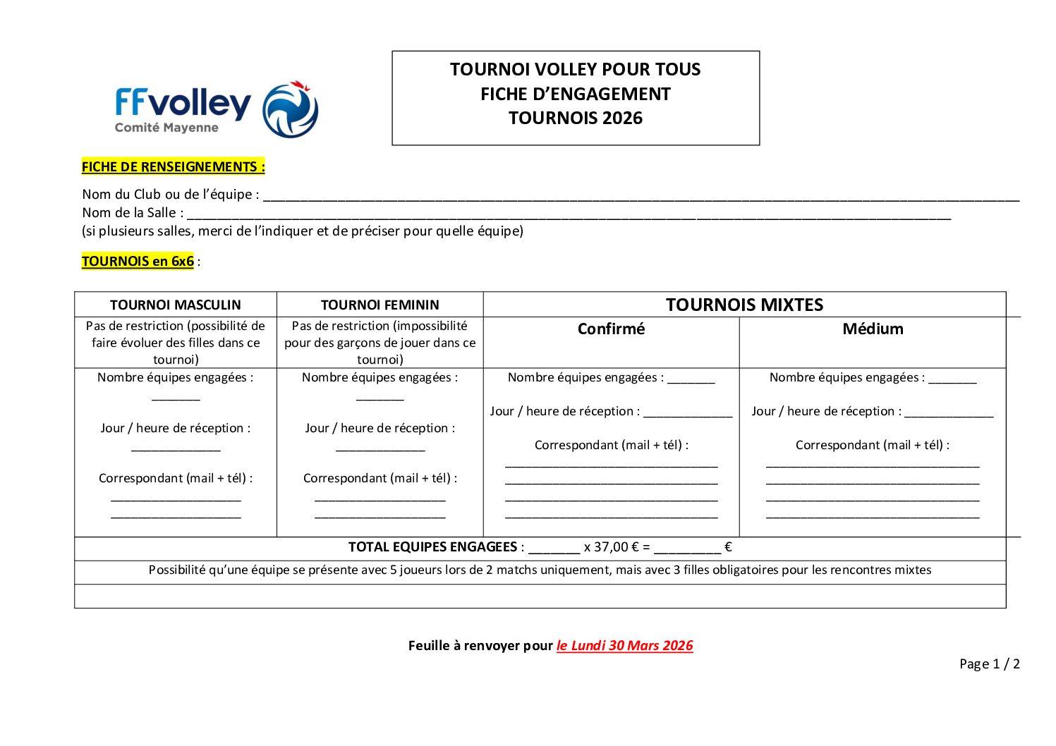 TOURNOI VOLLEY POUR TOUS